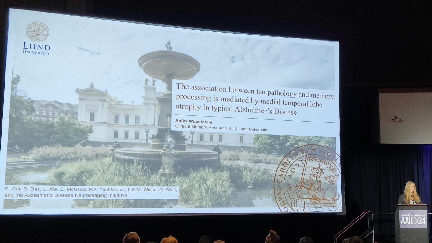 Anika Wuestefeld presented work showing that the effects of tau pathology is partially mediated by structural changes, and highlighted differential effects on subdomains of episodic memory across the AD spectrum (abstract available here). Memory impairments seem to follow from tau-induced effects in the MTL, with differential patterns observed for the subdomains. Semantic fluency impairment seems to follow from tau- induced effects in neocortical regions, while executive functioning impairment may be directly dependent on tau pathology.